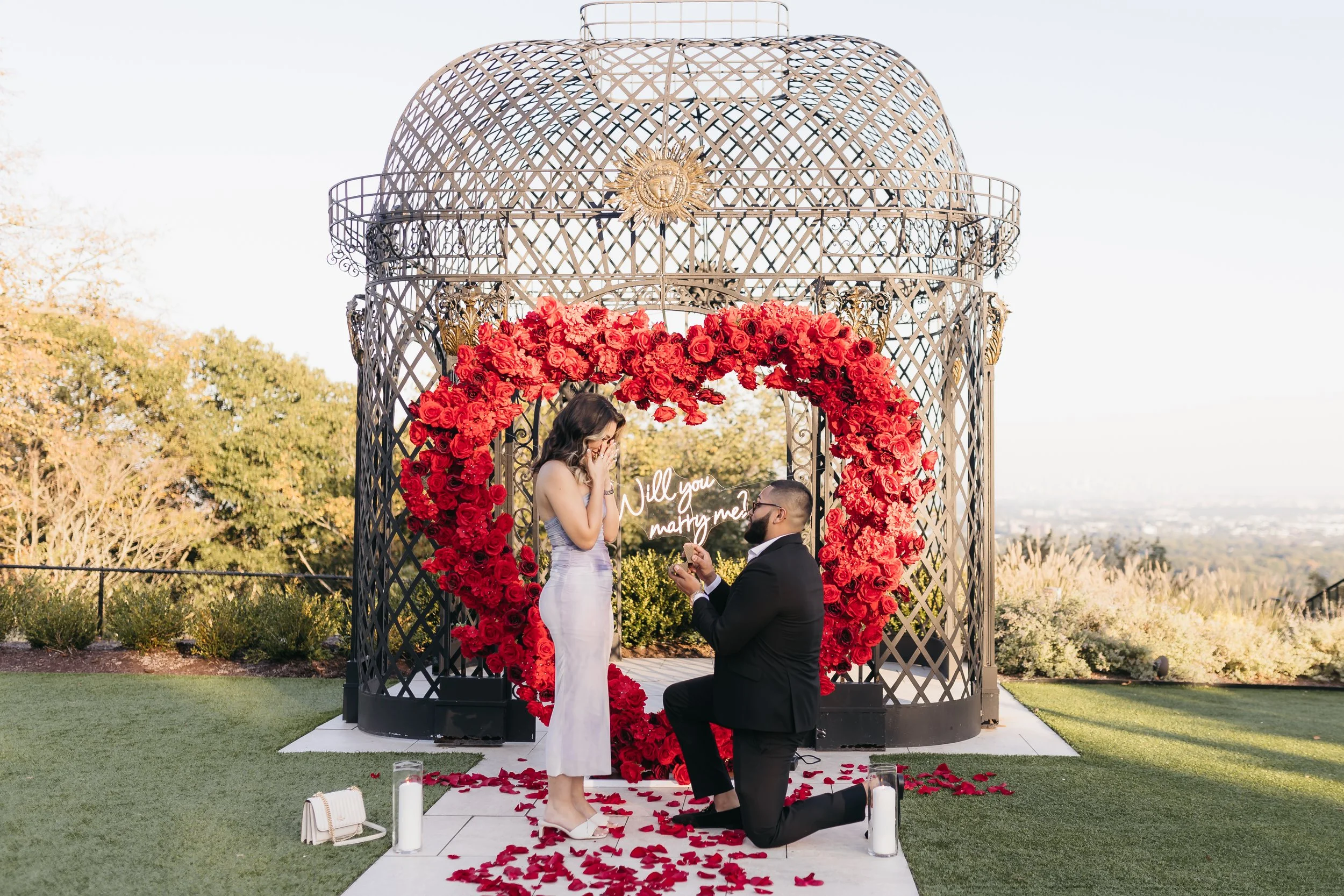 Yours Truly, Decor, is a comprehensive marriage proposal planning service based in New Jersey. That means we do it all, from start to finish! Depending on your current stage of planning, our involvement can encompass brainstorming creative concepts and scouting out ideal locations. In addition to crafting a heartfelt and romantic setting, with flowers and a custom backdrop. As a local business, we’re well connected to industry experts in New Jersey and will coordinate with other service providers, such as photographers.